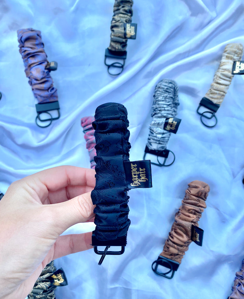 Our handmade Scrunch-Key’s sit comfortably on your wrist while holding your keys securely. Whether you’re running errands, heading to the gym, or juggling groceries, this stylish keyring ensures your keys are always within reach—without the hassle of digging through your bag.